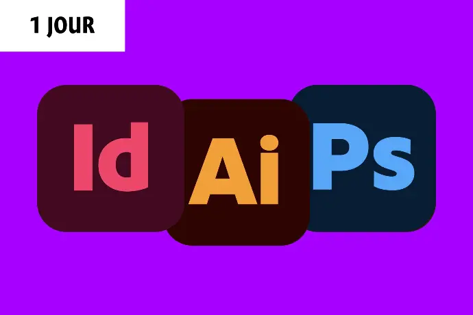 Dans nos formations, nous utilisons la suite Adobe Creative Cloud, qui reste le standard du marché en agence et en imprimerie : InDesign pour la mise en page de documents (flyers, brochures, rapports, magazines) prêts à imprimer, Illustrator pour la création vectorielle (logos, pictogrammes, illustrations redimensionnables sans perte de qualité) et Photoshop pour la retouche photo et la création de visuels.